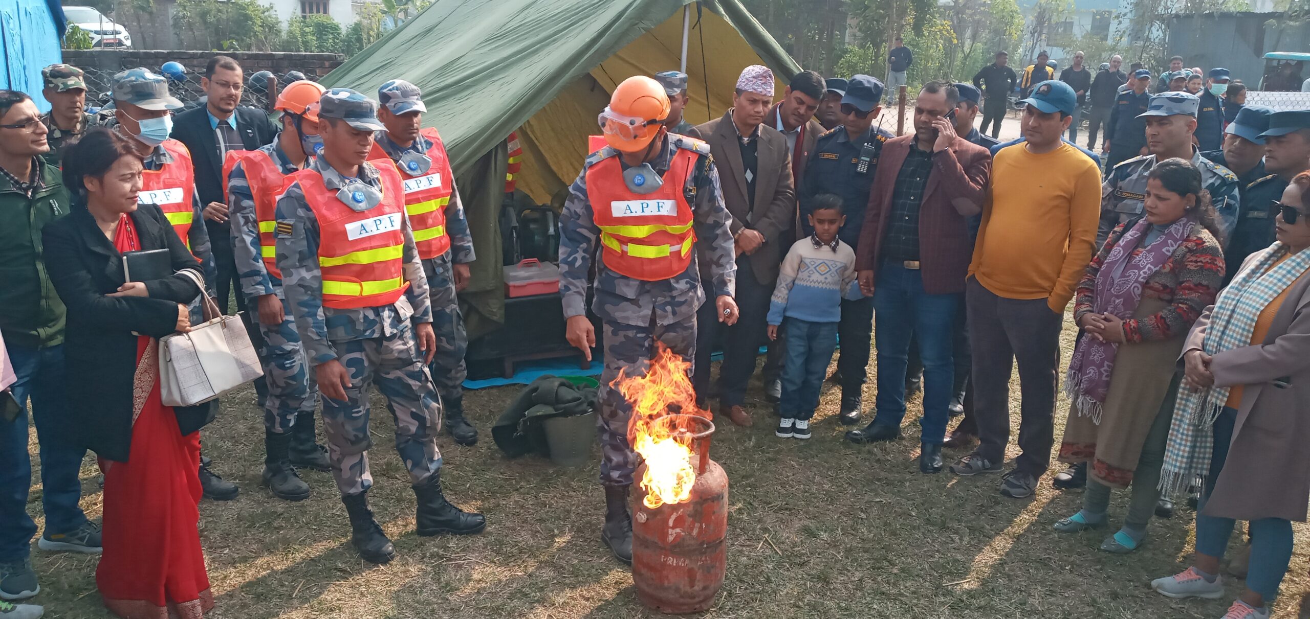 जिल्लाका विभिन्न स्थानमा सुखा मौसम जाडोको बेला बालिने आगो (घुरको) कारण भई रहेको आगलागी र त्यस पछि हुने विपतको असर प्रभाव तथा राहत र उद्यारको प्रकृया बारेमा सर्वसाधारणलाई जानकारी दिने उद्देश्यले कृतिम घटना अभ्यास गरिएको जनाइएको छ ।