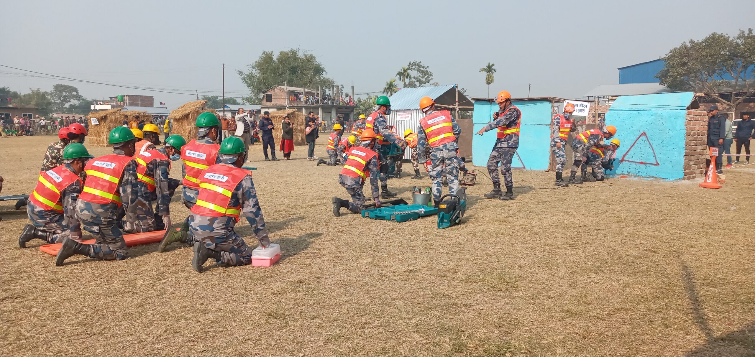 जिल्ला विपत व्यवस्थापन समितिले एक दिवसीय कृतिम घटना अभ्यास कार्यक्रममा केहि घर निर्माण गरी भूकम्प र केहि फुसको घर बनाएर विद्युत सर्ट भएर भएको आगलागिको घटना गराएर त्यसको असर, घाइतेको उद्दार, उपचार र मृतक खोज तथा शव संकलन लगाउतको अभ्यास गरिएको प्रमुख जिल्ला अधिकारी इन्द्र देव यादवले जानकारी दिनु भयो ।